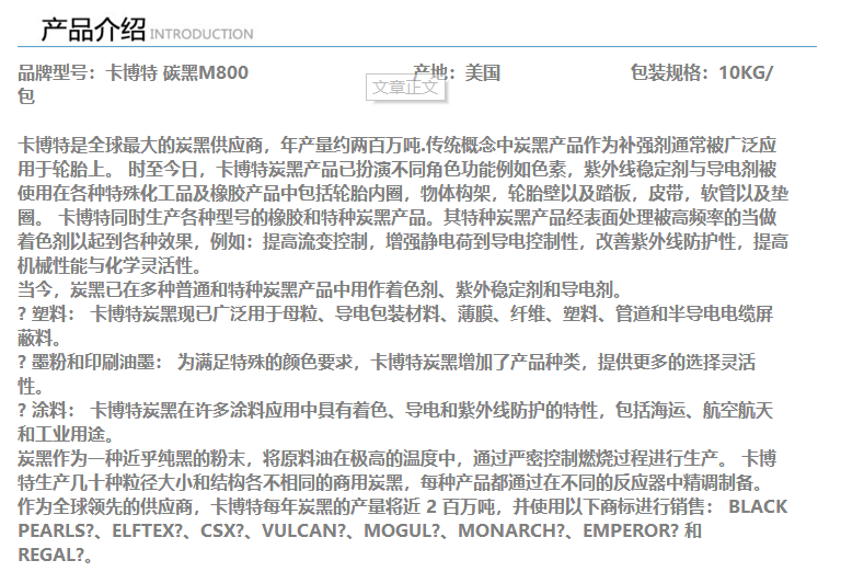 深圳华亿昌 卡博特M800碳黑