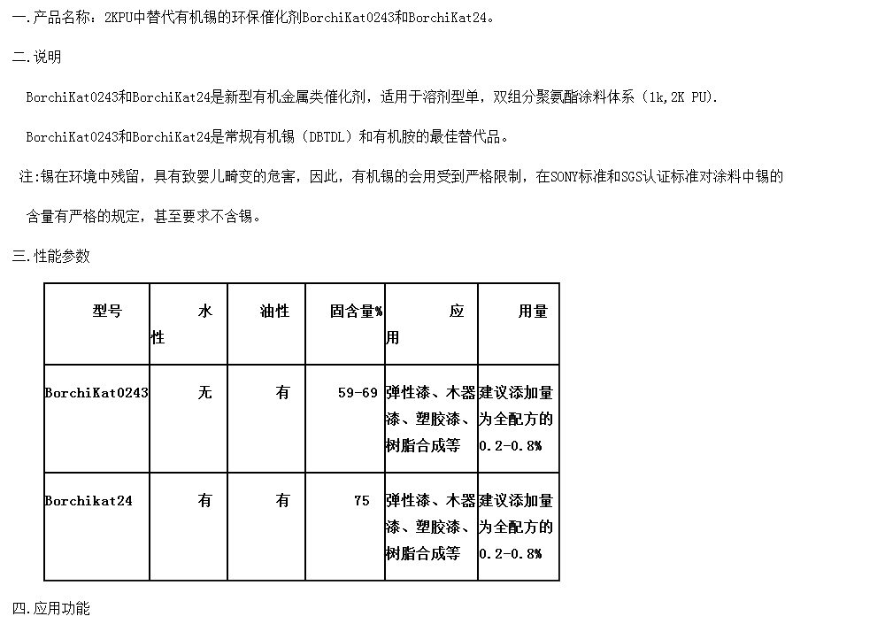 环保型PU催化剂(不含锡)BorchiKat 0243和BorchiKat24