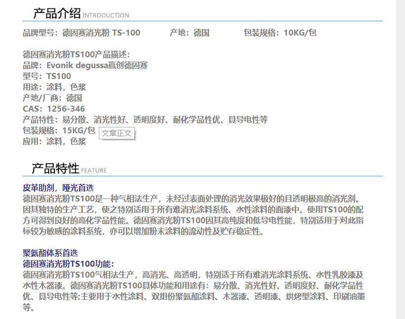 深圳华亿昌 德固赛TS100消光粉