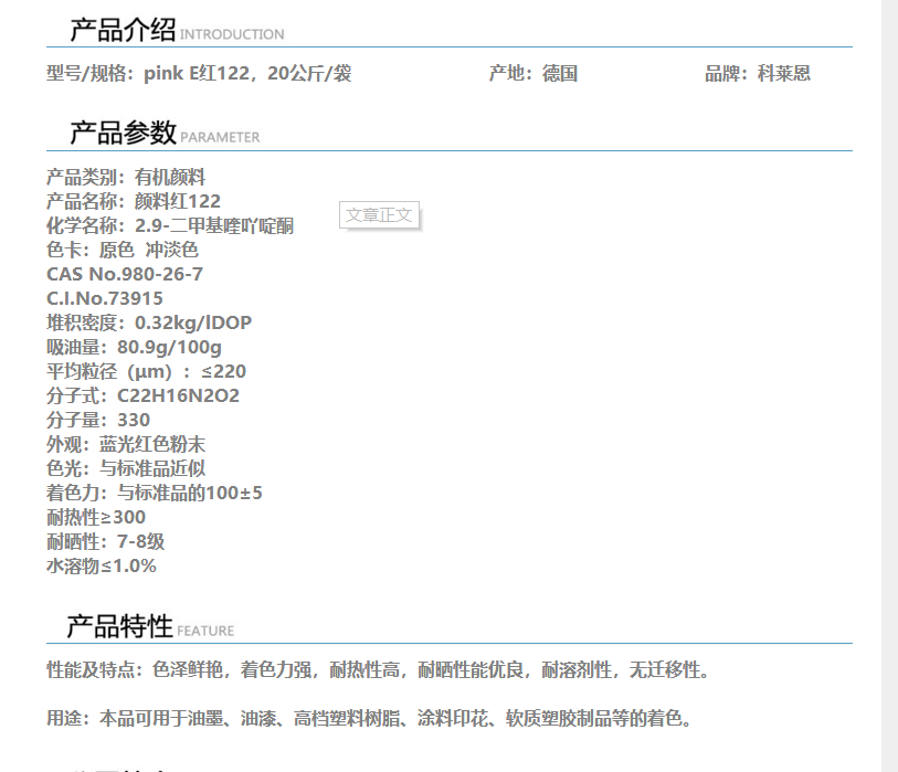 深圳华亿昌 科莱恩PINK E红122
