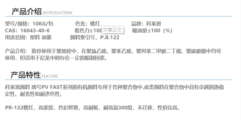 深圳华亿昌 科莱恩PINK E01红122