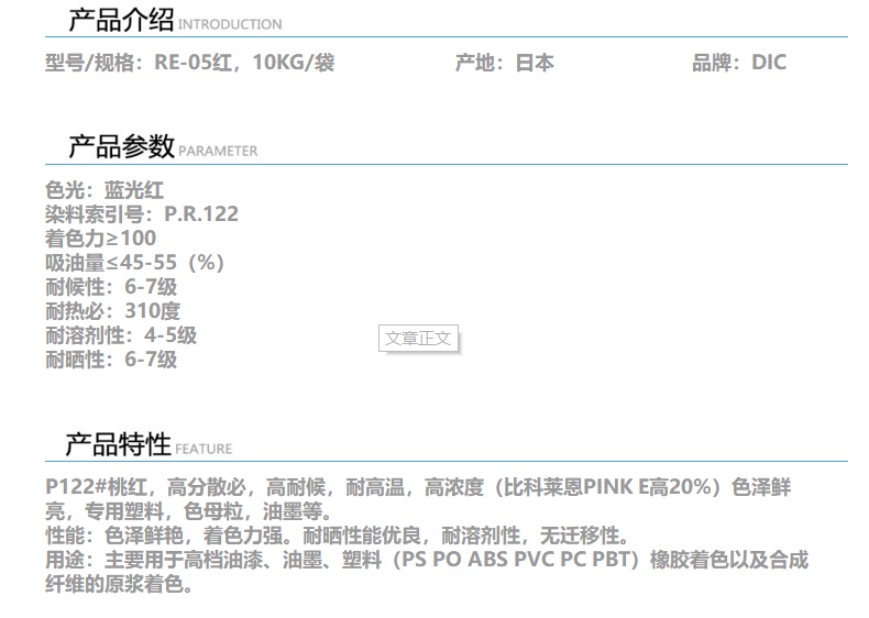 深圳华亿昌 日本DIC颜料 DIC红RE-05