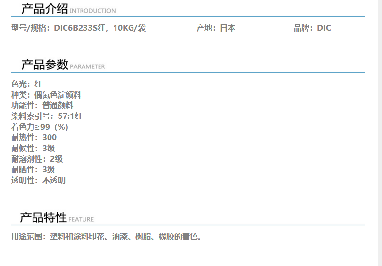 深圳华亿昌 日本DIC颜料 DIC 红6B233S