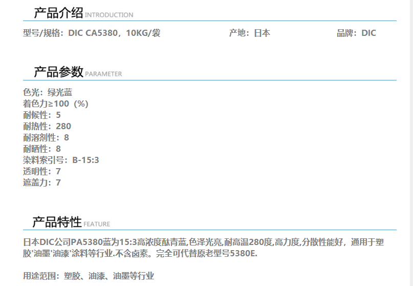 深圳华亿昌 日本DIC颜料 DIC酞青蓝CA5380