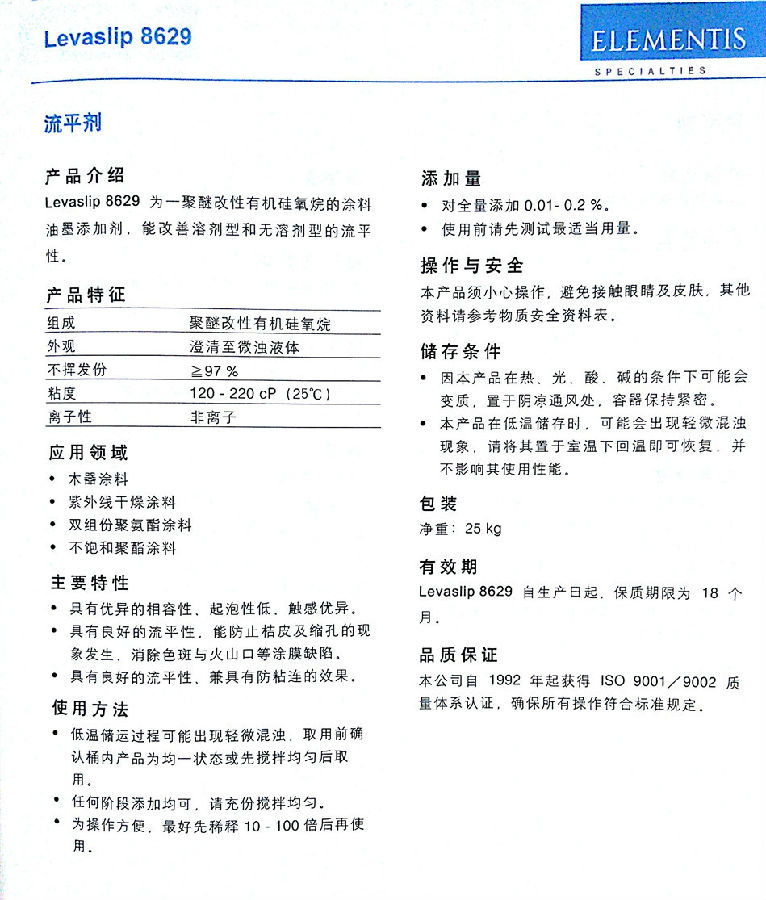 英国海名斯·德谦 Levaslip 8629 溶剂型流平剂