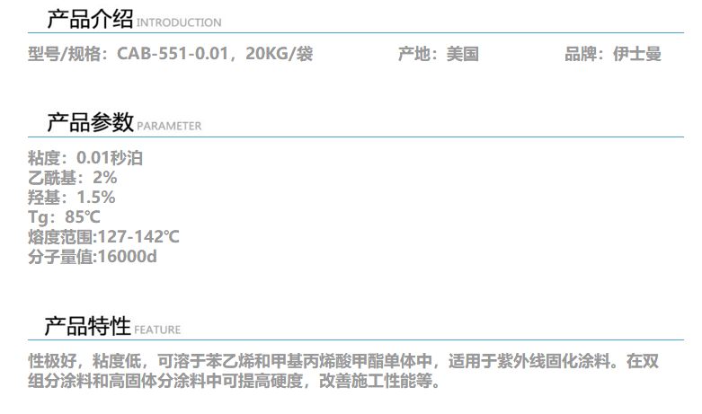 深圳华亿昌 伊士曼 CAB-551-0.01纤维素