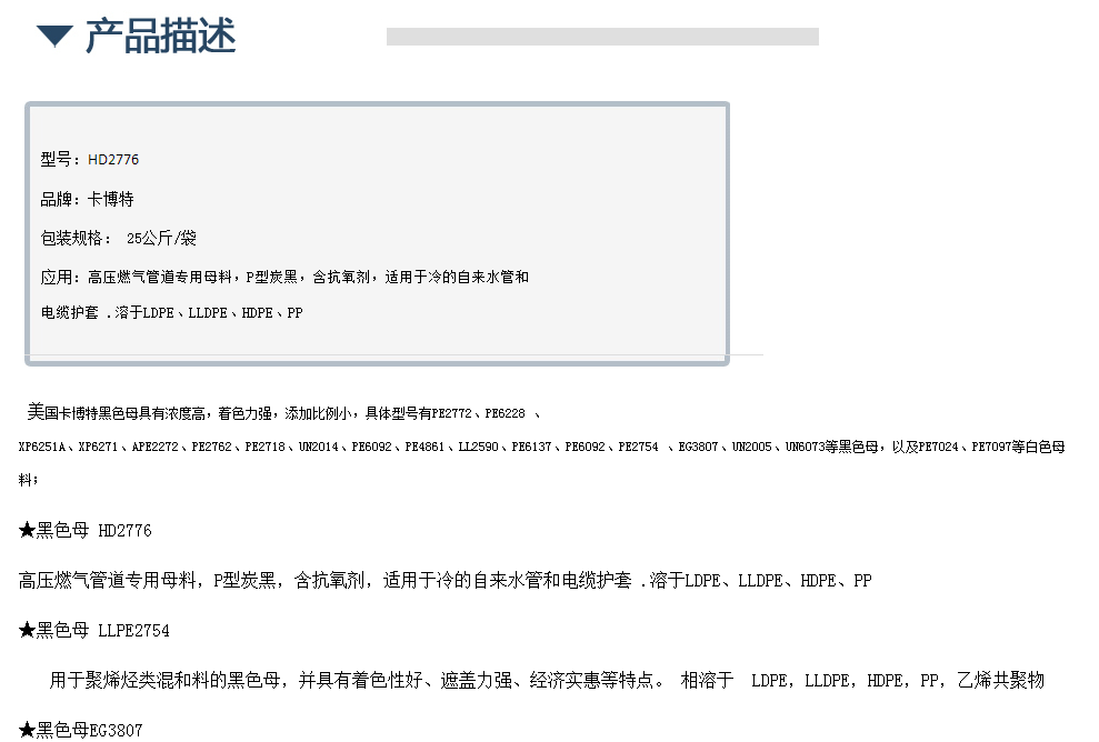 美国卡博特CABOT黑色母粒HD2776