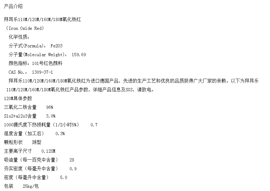 德国朗盛拜耳乐无机颜料氧化铁红160M BAYFERROX Red