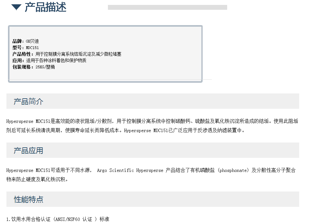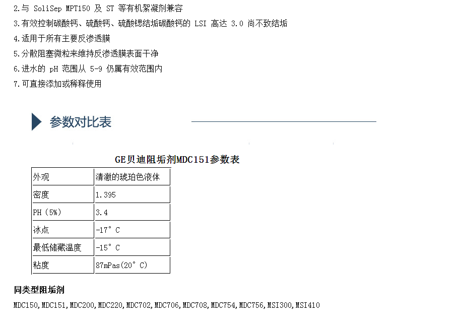 GE贝迪阻垢剂MDC151