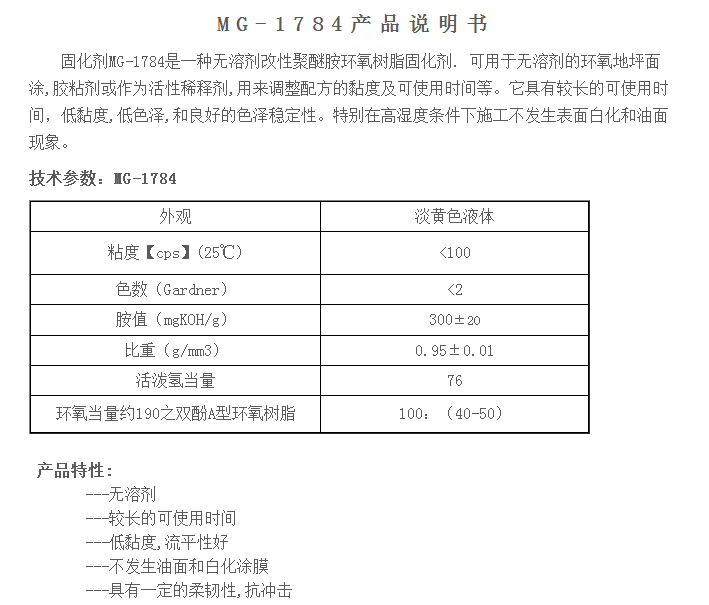 徐州麦古 环氧自流平专用固化剂 MG-1784