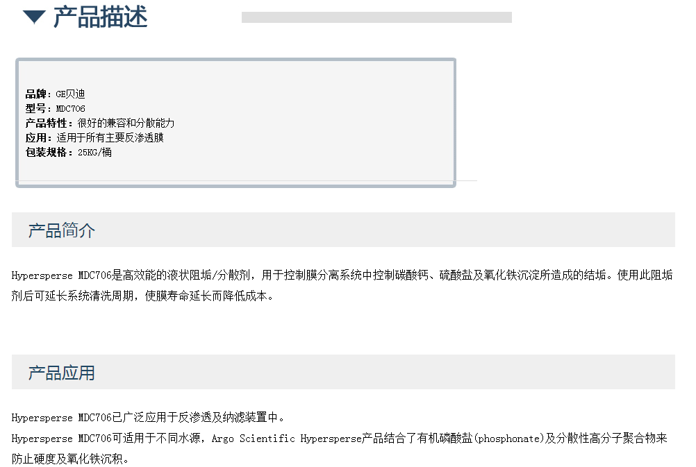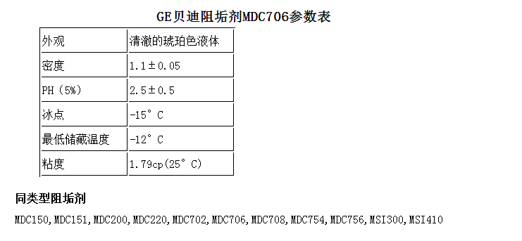 GE贝迪阻垢剂MDC706