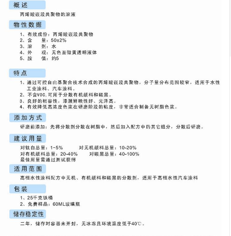 金团化学品 可控聚合丙烯酸嵌段共聚物类湿润分散剂 KEPERDISP-6950