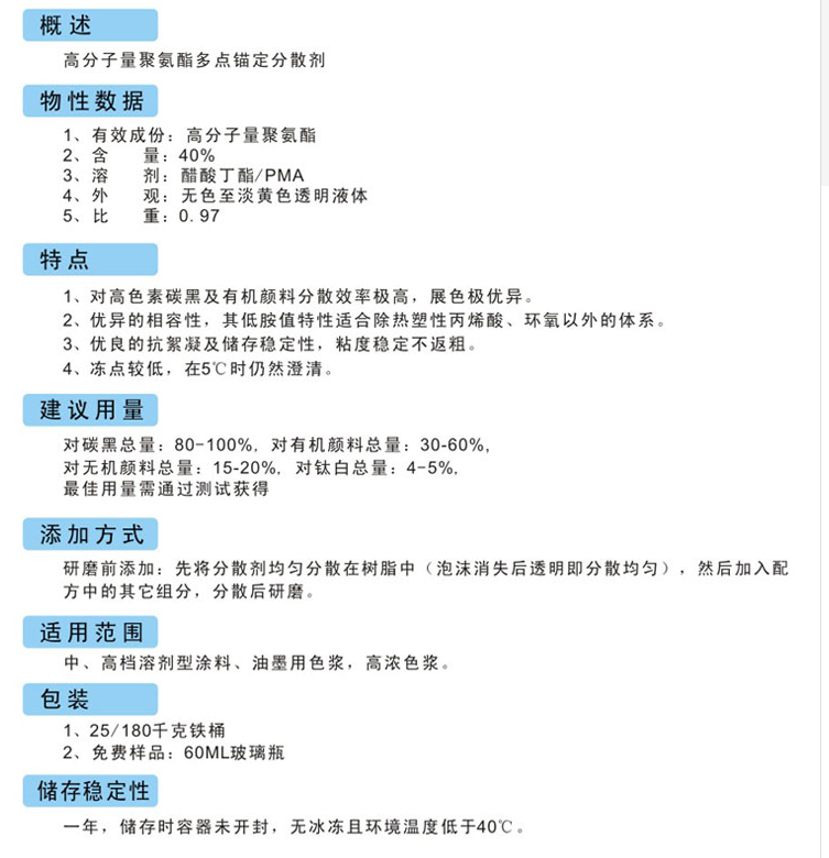 金团化学品 高分子量聚氨酯型分散剂 KEPERDISP 639