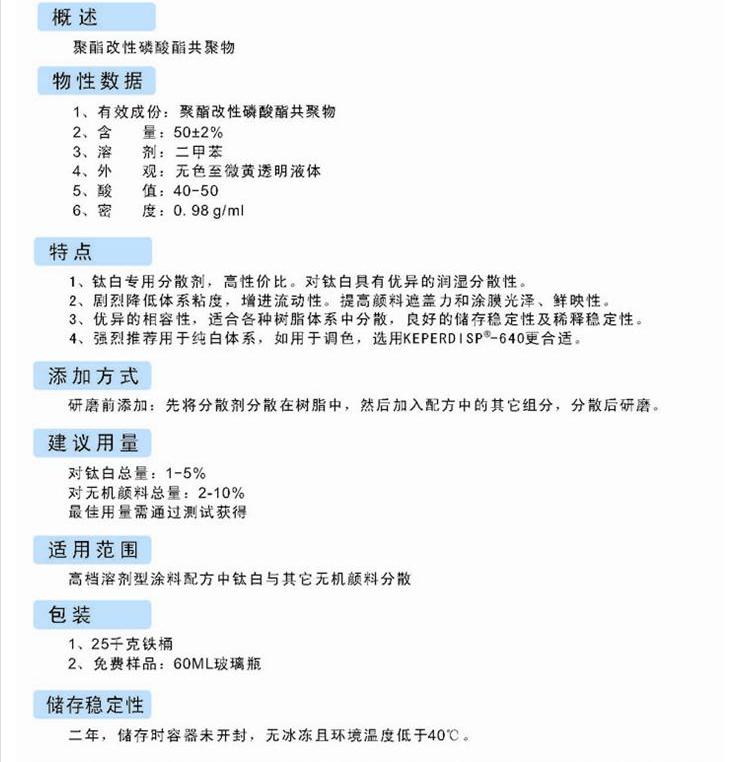 金团化学品 无机颜料润湿分散剂 KEPERDISP 632