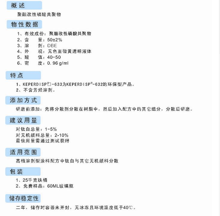 金团化学品 无机颜料润湿分散剂 KEPERDISP 633