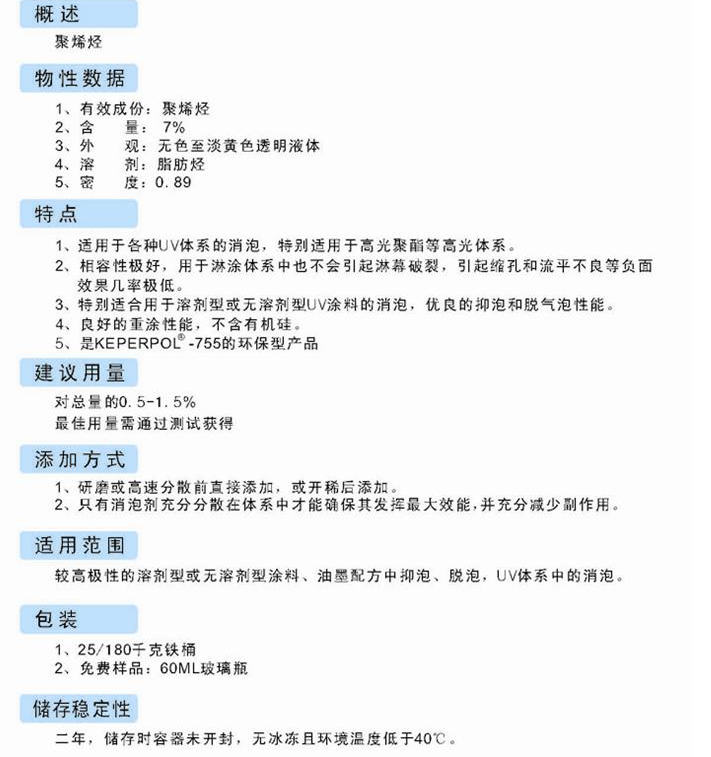 金团化学品 溶剂型及无溶剂型涂料体系用聚烯烃消泡剂 KEPERPOL-756