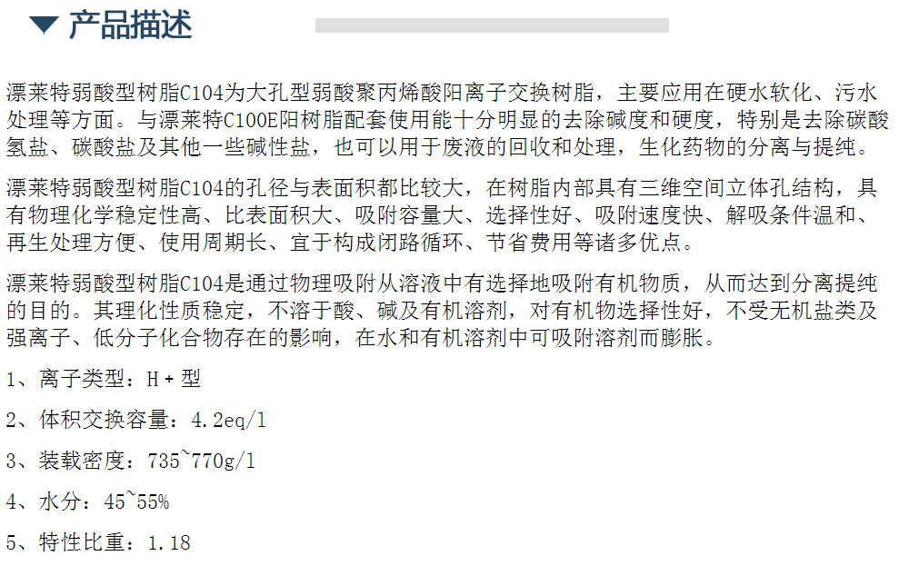 漂莱特弱酸型离子交换树脂C104