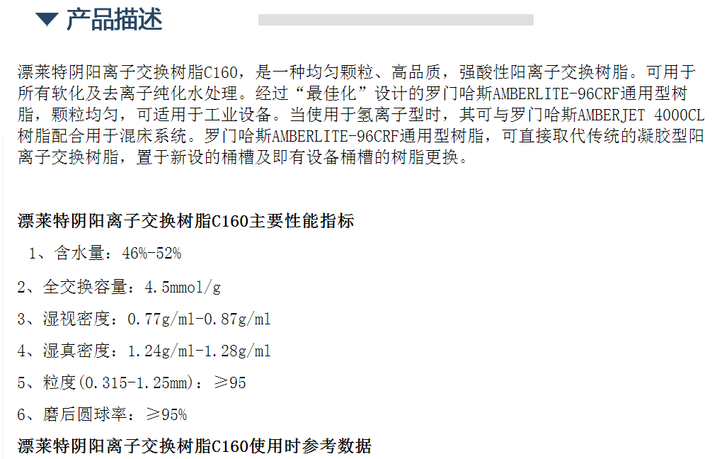 漂莱特强酸型离子交换树脂 C160