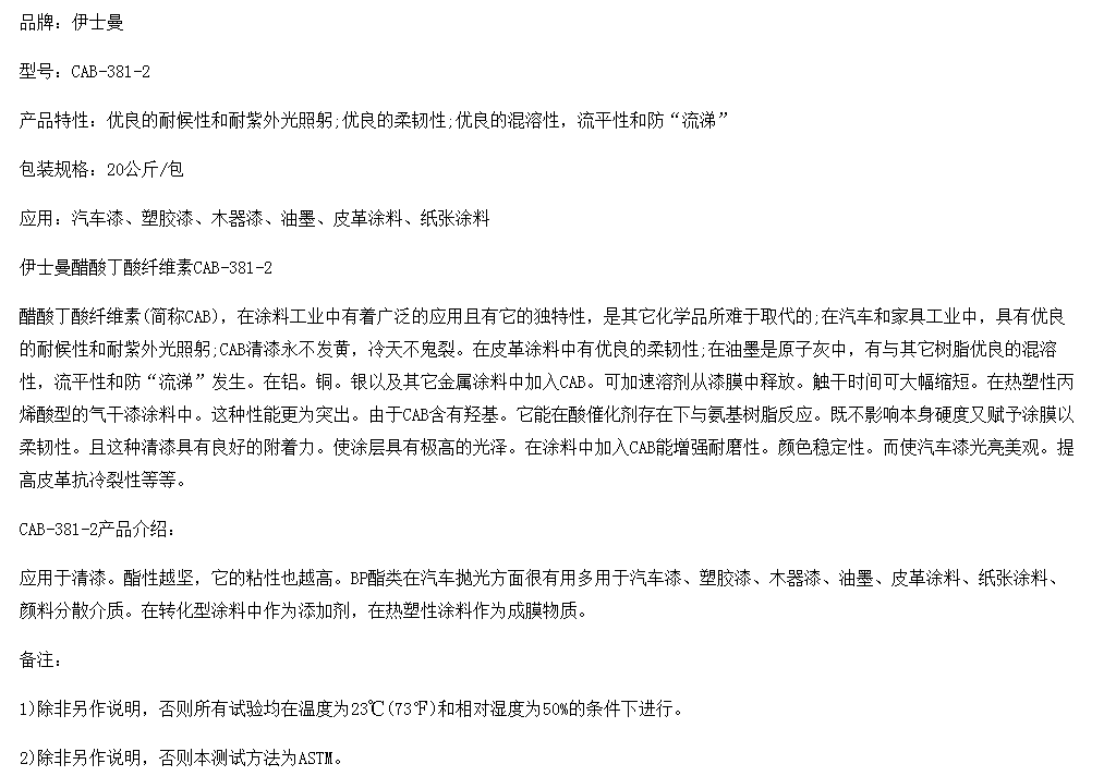 伊士曼醋酸丁酸纤维素CAB-381-2 原装正品