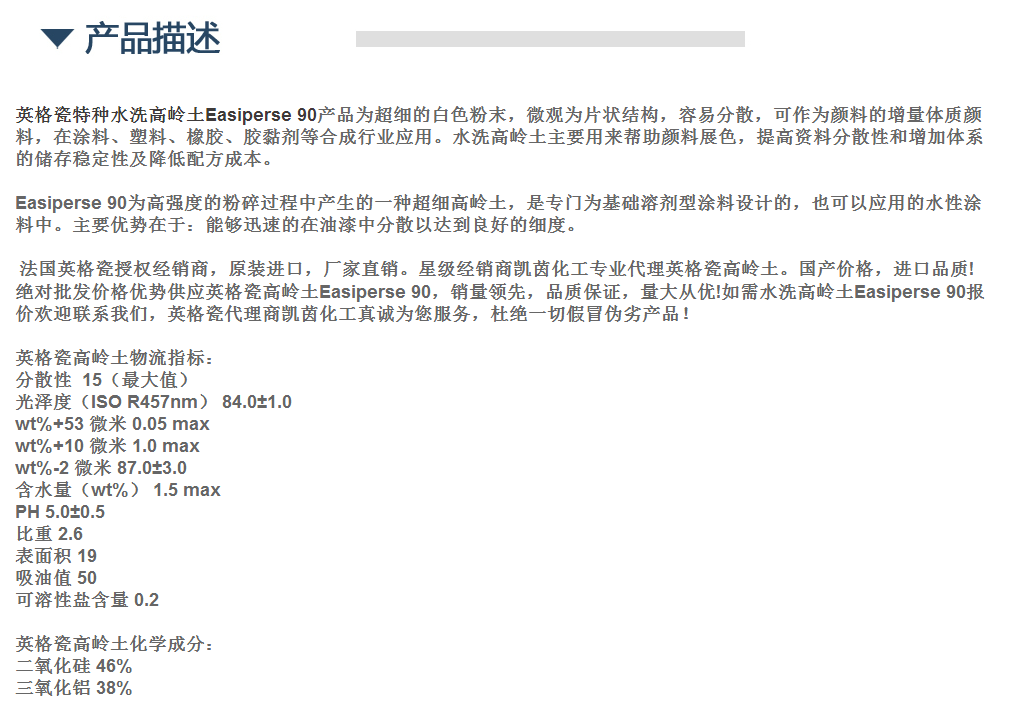 英格瓷特种水洗高岭土Easiperse 90