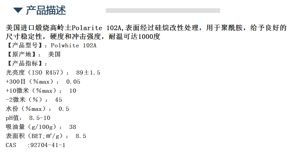 英格瓷煅烧高岭土Polarite 102A, 美国进口 用于尼龙产品