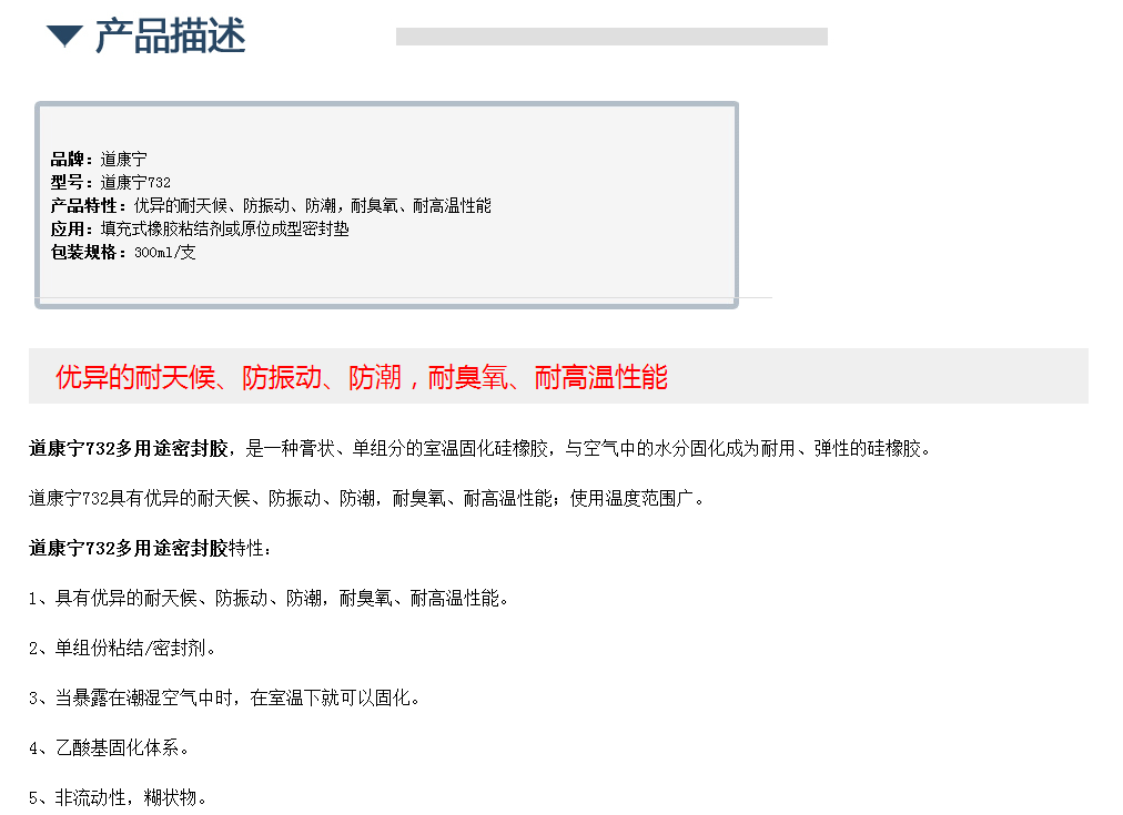 美国道康宁732多用途密封胶