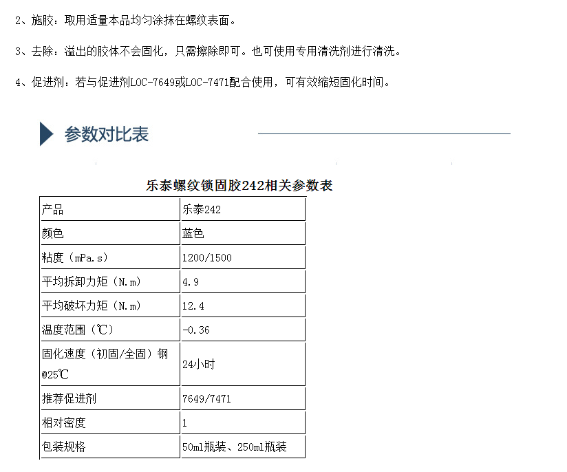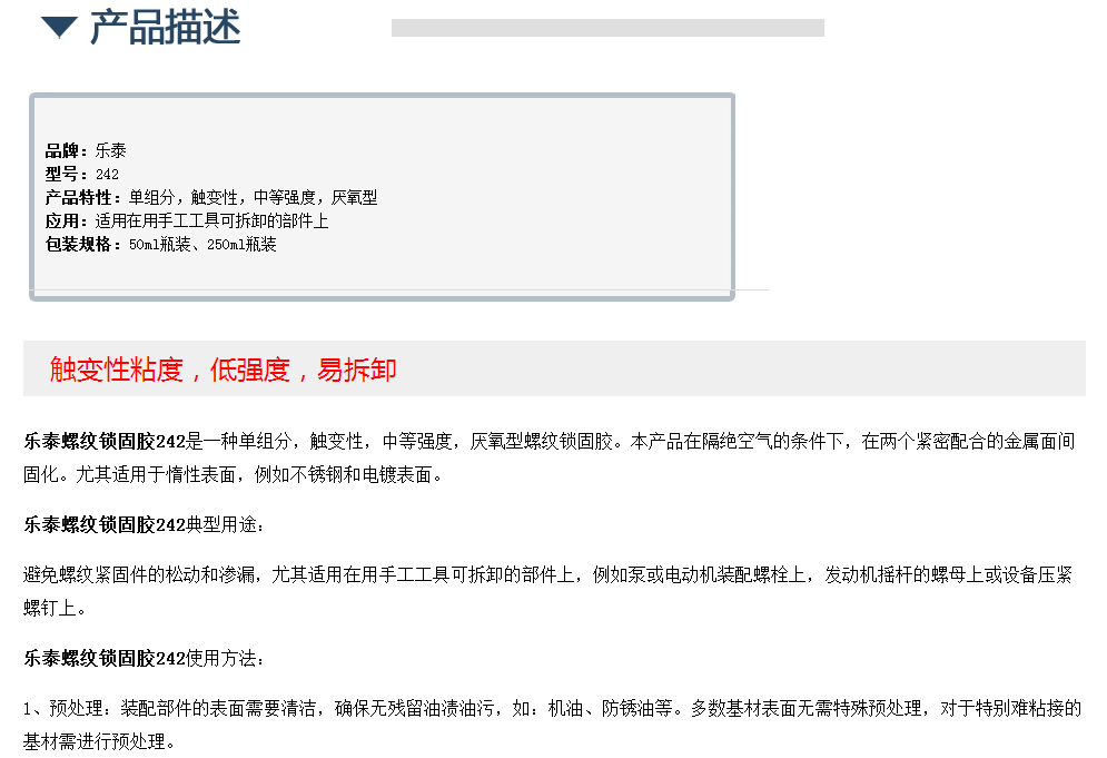 美国乐泰螺纹锁固胶242
