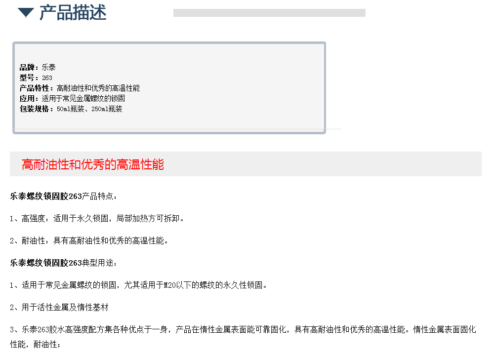 美国乐泰螺纹锁固胶263