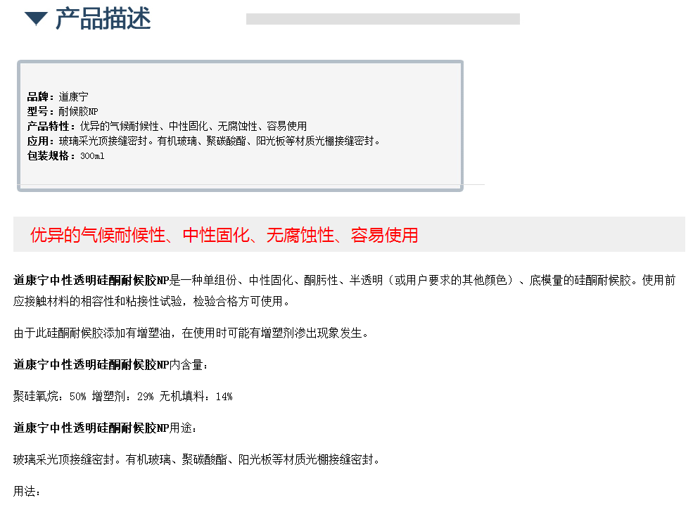 美国道康宁中性透明硅酮耐候胶NP