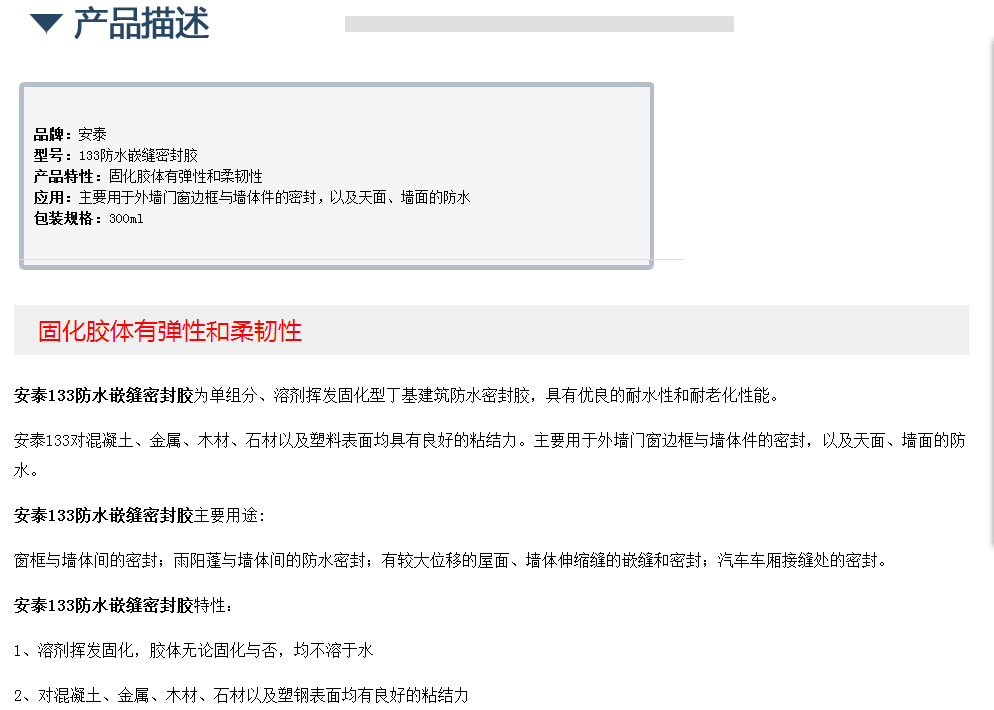 安泰133防水嵌缝密封胶