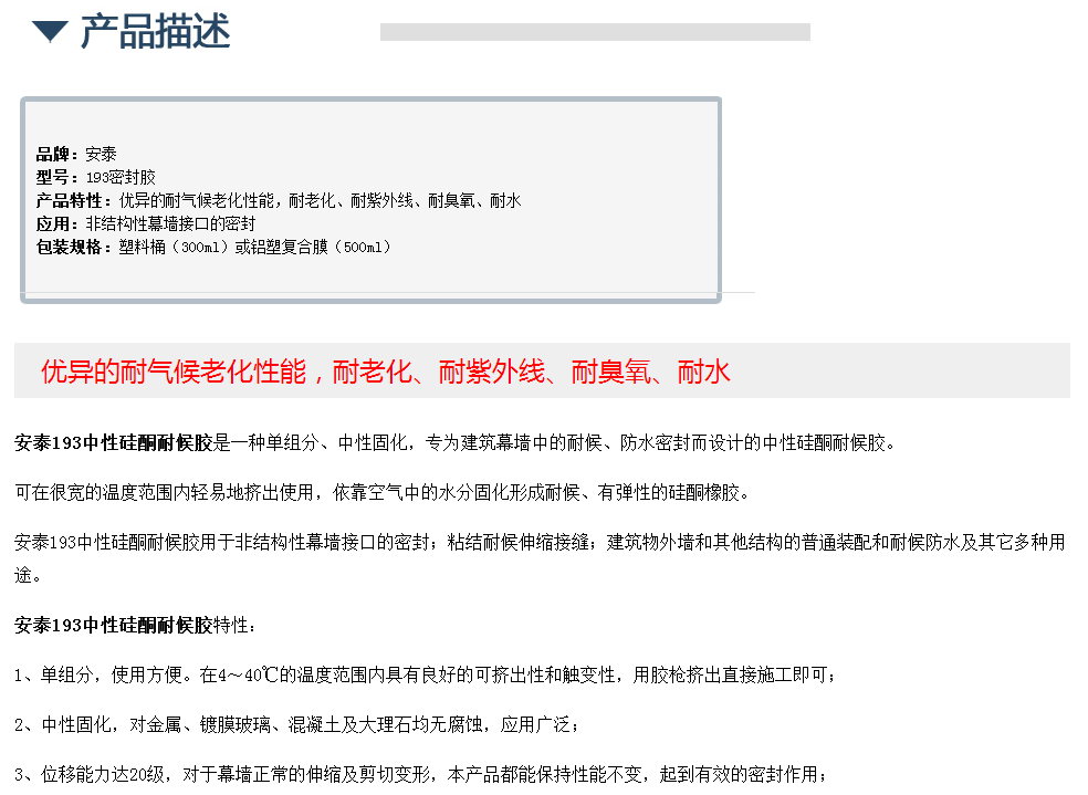 安泰193中性硅酮耐候胶