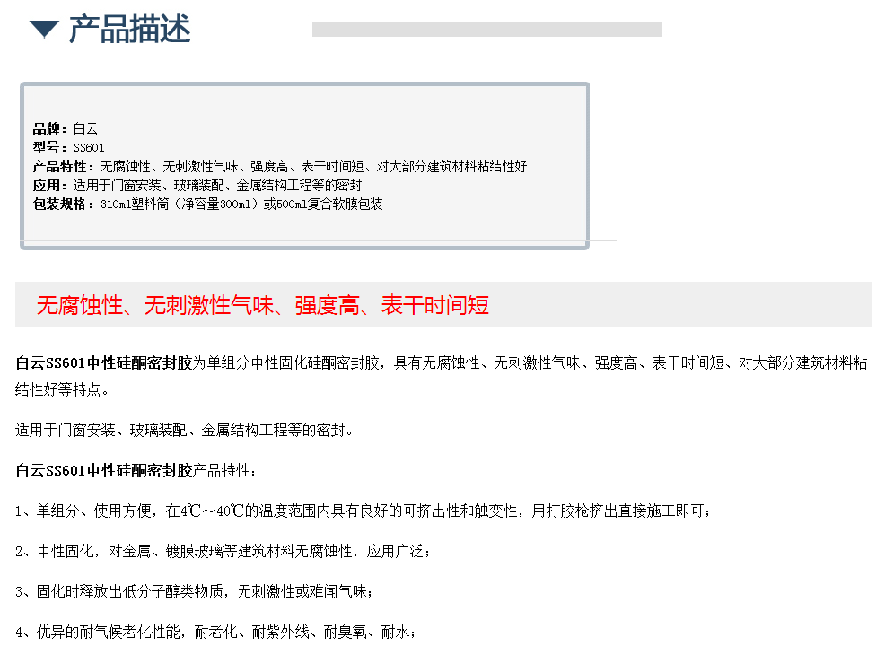 白云SS601中性硅酮密封胶