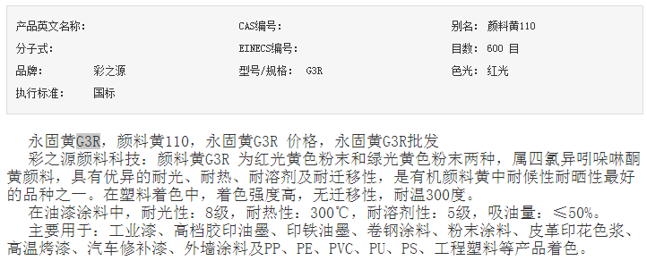 莱州彩之源 颜料黄G3R