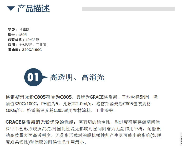 美国原装GRACE格雷斯消光粉C805