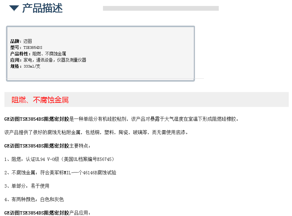 GE迈图(东芝)TSE3854DS阻燃密封胶