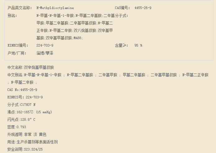 山东攀泽 脂肪烷基叔胺系列 双辛基甲基叔胺