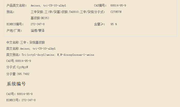 山东攀泽 脂肪烷基叔胺系列 三辛 癸烷基叔胺