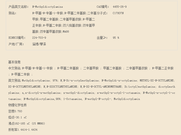 山东攀泽 脂肪烷基叔胺系列 双辛烷基甲基叔胺