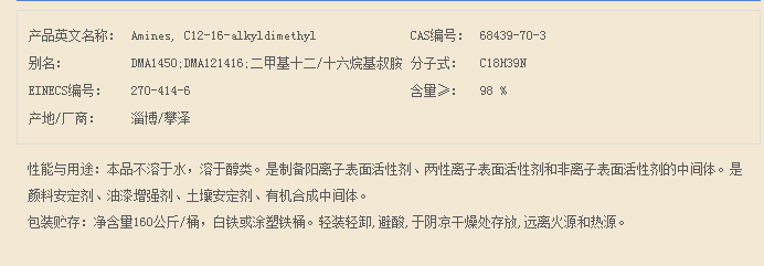 山东攀泽 脂肪烷基叔胺系列 十二/十六烷基二甲基叔胺