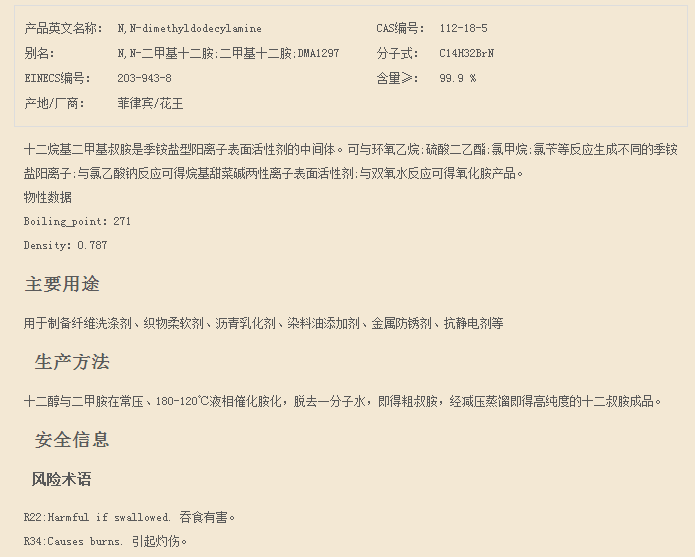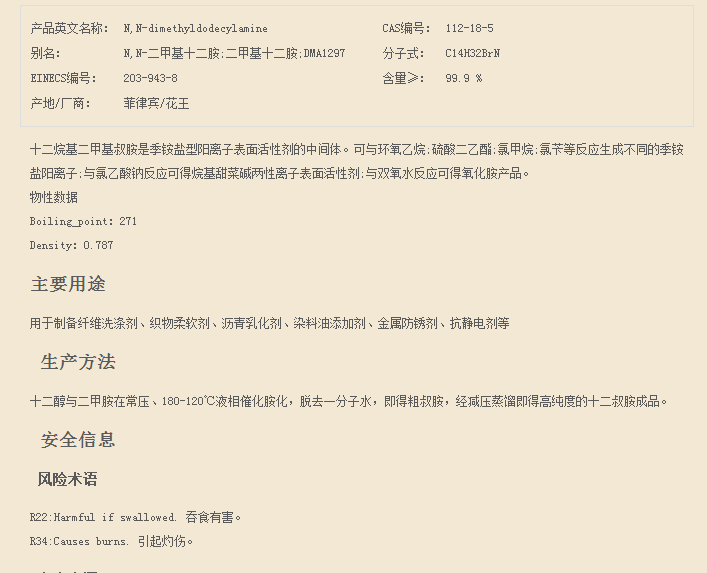 山东攀泽 脂肪烷基叔胺系列 十二烷基二甲基叔胺