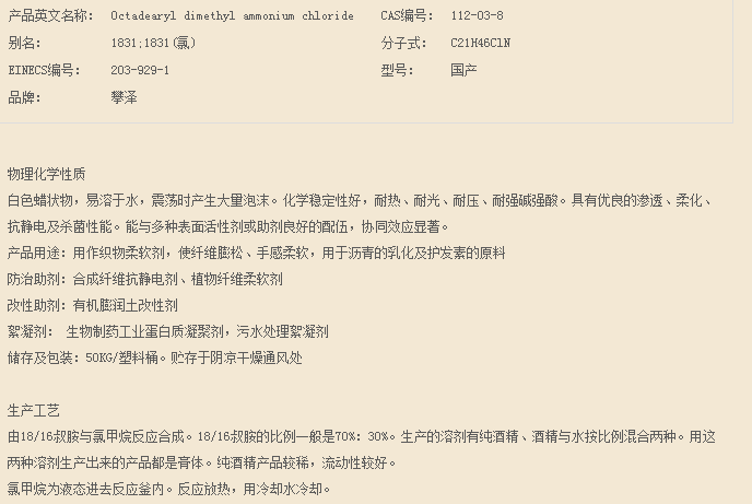山东攀泽 季铵盐系列 十八烷基三甲基氯化铵