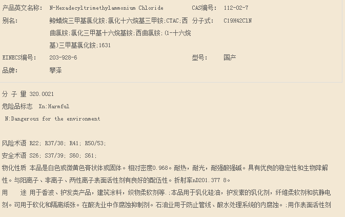 山东攀泽 季铵盐系列 十六烷基三甲基氯化铵