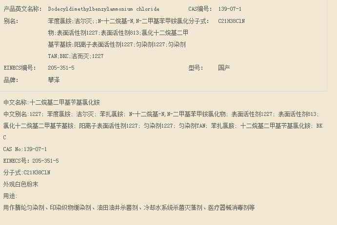 山东攀泽 季铵盐系列 十二烷基二甲基苄基氯化铵