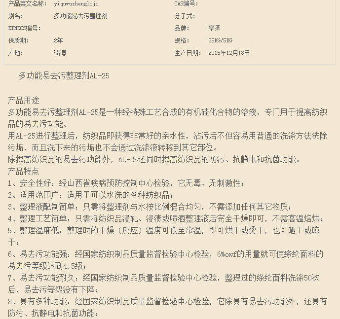 山东攀泽 增稠剂发泡剂系列 多功能易去污整理剂AL-25