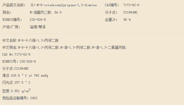 山东攀泽 N-油基-1,3-丙二胺
