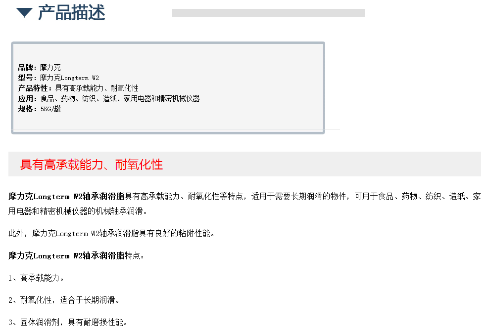 摩力克Longterm W2轴承润滑脂