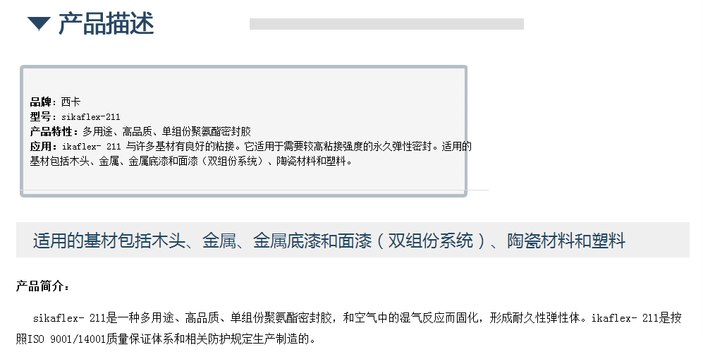 西卡聚氨酯 sikaflex- 211密封胶