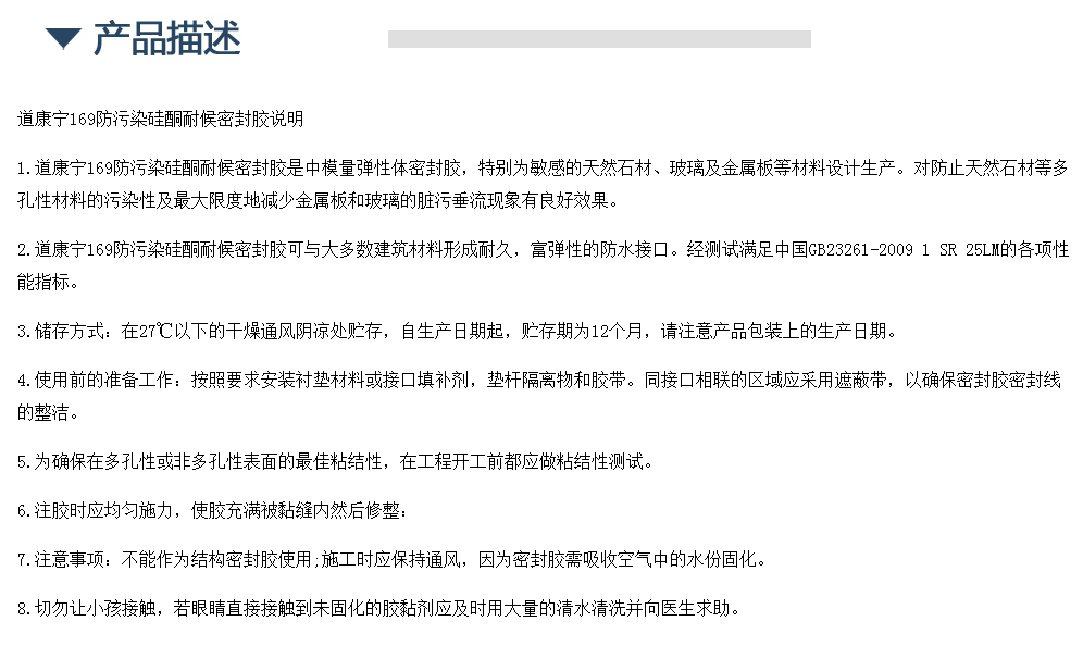 道康宁SJ169中性硅酮石材耐候密封胶 石材幕墙防污染密封胶