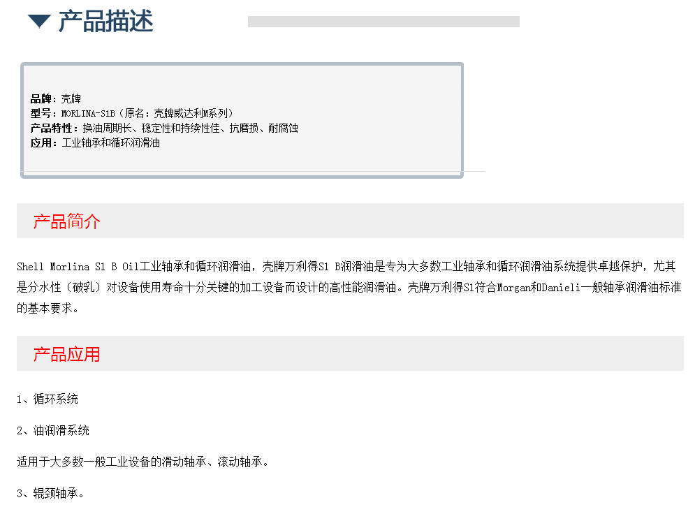 壳牌MORLINA(万利得)S1B系统循环润滑油