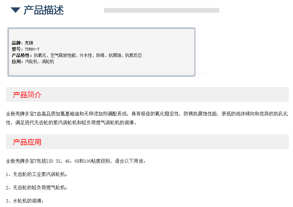 壳牌TURBO(多宝)T通用涡轮机油